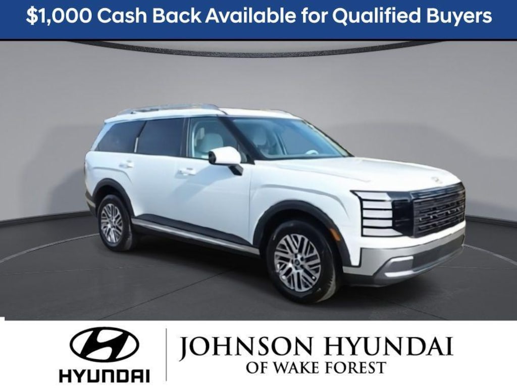 3rd row seats: split-bench, 4-Wheel Disc Brakes, 8 Speakers, ABS brakes, Air Conditioning, Alloy wheels, AM/FM radio: SiriusXM, Apple CarPlay & Android Auto, Auto High-beam Headlights, Auto-dimming Rear-View mirror, Auto-leveling suspension, Automatic temperature control, Brake assist, Bumpers: body-color, Cargo Cover, Cargo Net, Cargo Tray, Carpeted Floor Mats, Compass, Delay-off headlights, Driver door bin, Driver vanity mirror, Dual front impact airbags, Dual front side impact airbags, Electronic Stability Control, Emergency communication system: None, Exterior Parking Camera Rear, First Aid Kit, Four wheel independent suspension, Front anti-roll bar, Front Bucket Seats, Front Center Armrest, Front dual zone A/C, Front reading lights, Fully automatic headlights, H-Tex Leatherette Seat Trim, Heated door mirrors, Heated Front Bucket Seats, Heated front seats, Illuminated entry, Knee airbag, Leather steering wheel, Low tire pressure warning, Navigation System, Occupant sensing airbag, Option Group 01, Outside temperature display, Overhead airbag, Overhead console, Panic alarm, Passenger door bin, Passenger vanity mirror, Power door mirrors, Power driver seat, Power Liftgate, Power steering, Power windows, Radio data system, Radio: Infotainment Navigation System, Rear air conditioning, Rear anti-roll bar, Rear audio controls, Rear reading lights, Rear side impact airbag, Rear window defroster, Rear window wiper, Reclining 3rd row seat, Remote keyless entry, Security system, Speed control, Split folding rear seat, Spoiler, Steering wheel mounted audio controls, Tachometer, Telescoping steering wheel, Tilt steering wheel, Traction control, Trip computer, Turn signal indicator mirrors, Variably intermittent wipers, Wheels: 18" x 8.0J Alloy. Price includes all applicable rebates in lieu of Special APR; Manufacture Lender Standard Financing Required *Price plus dealer installed accessories.**Please see dealer for details.$1000 - Hyundai HMF Dealer Choice : $1000 discount and 5.39% APR for 24 months. $44.05 per $1000 financed. Available to well qualified buyers who finance through Hyundai Motor Finance. H704. Exp. 03/31/2026