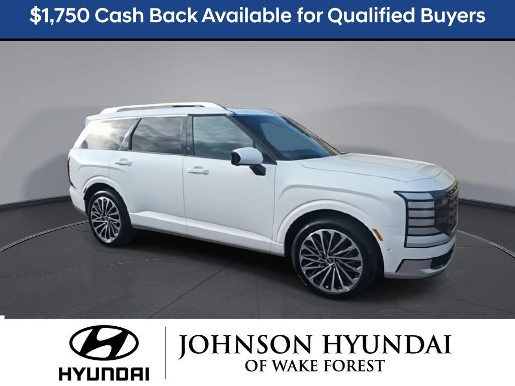 Price includes all applicable rebates in lieu of Special APR; Manufacture Lender Standard Financing Required *Price plus dealer installed accessories.**Please see dealer for details. 2026 Hyundai Palisade Calligraphy Creamy White Pearl