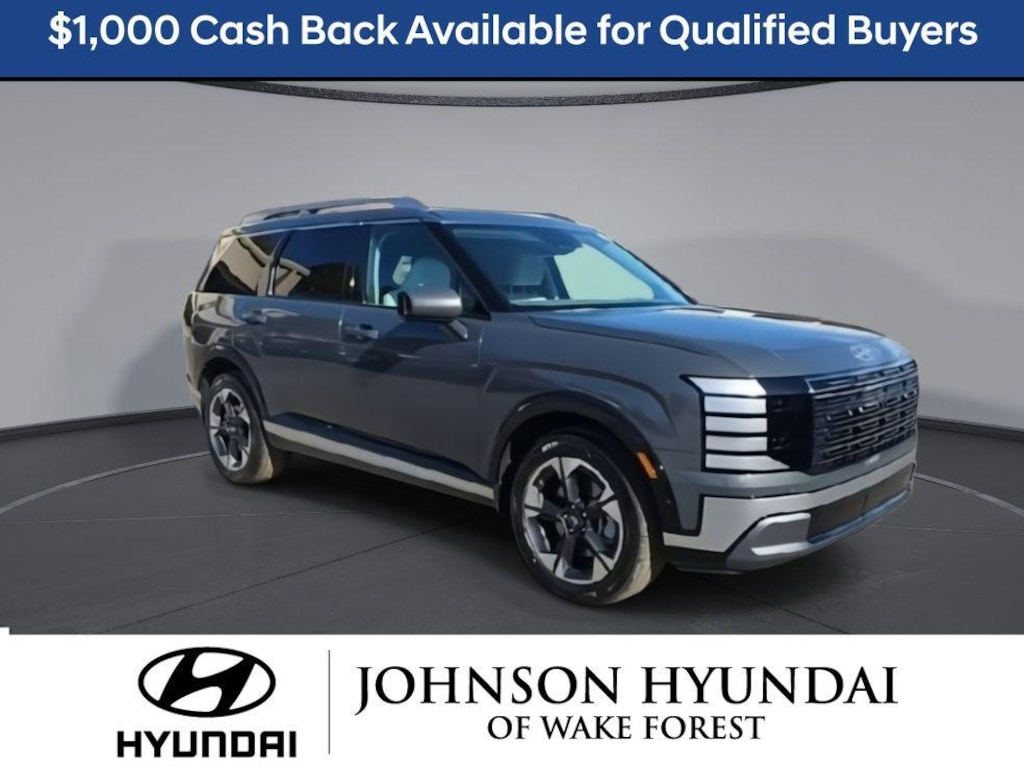 14 Speakers, 3rd row seats: split-bench, 4-Wheel Disc Brakes, ABS brakes, Air Conditioning, Alloy wheels, AM/FM radio: SiriusXM, Apple CarPlay & Android Auto, Audio memory, Auto High-beam Headlights, Auto-dimming door mirrors, Auto-dimming Rear-View mirror, Auto-leveling suspension, Automatic temperature control, Brake assist, Bumpers: body-color, Cargo Net, Cargo Tray, Carpeted Floor Mats, Compass, Delay-off headlights, Driver door bin, Driver vanity mirror, Dual front impact airbags, Dual front side impact airbags, Electronic Stability Control, Emergency communication system: None, Exterior Parking Camera Rear, First Aid Kit, Four wheel independent suspension, Front anti-roll bar, Front Bucket Seats, Front Center Armrest, Front dual zone A/C, Front reading lights, Fully automatic headlights, Garage door transmitter: HomeLink, Genuine wood console insert, Genuine wood dashboard insert, Heated and Ventilated Front Bucket Seats, Heated door mirrors, Heated front seats, Heated rear seats, Heated steering wheel, HVAC memory, Illuminated entry, Knee airbag, Leather Seat Trim, Leather steering wheel, Low tire pressure warning, Memory seat, Mud Guards, Navigation System, Occupant sensing airbag, Option Group 01, Outside temperature display, Overhead airbag, Overhead console, Panic alarm, Passenger door bin, Passenger vanity mirror, Power door mirrors, Power driver seat, Power Liftgate, Power moonroof, Power passenger seat, Power steering, Power windows, Radio data system, Radio: Infotainment Navigation System, Rear air conditioning, Rear anti-roll bar, Rear audio controls, Rear reading lights, Rear side impact airbag, Rear window defroster, Rear window wiper, Reclining 3rd row seat, Remote keyless entry, Security system, Speed control, Split folding rear seat, Spoiler, Steering wheel mounted audio controls, Tachometer, Telescoping steering wheel, Tilt steering wheel, Traction control, Trip computer, Turn signal indicator mirrors, Variably intermittent wipers, Ventilated front seats, Ventilated rear seats, Wheels: 20" x 8.0J Alloy. Price includes all applicable rebates in lieu of Special APR; Manufacture Lender Standard Financing Required *Price plus dealer installed accessories.**Please see dealer for details.$1000 - Hyundai HMF Dealer Choice: $1000 discount and 5.39% APR for 24 months. $44.05 per $1000 financed. Available to well qualified buyers who finance through Hyundai Motor Finance. H704. Exp. 04/30/2026 $1000 - Sales Event Cash. Exp. 04/30/2026