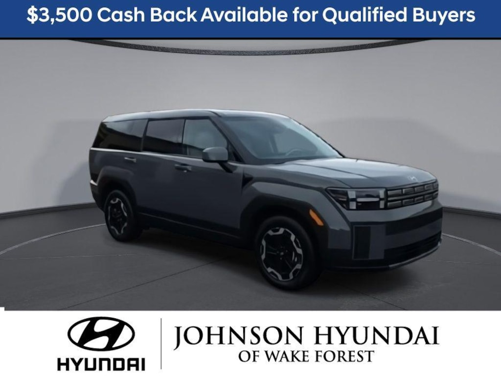 Gray Cloth, 18" x 7.5J Alloy Wheels, 3rd row seats: bench, 4-Wheel Disc Brakes, 6 Speakers, ABS brakes, Air Conditioning, All Season Fitted Liners, Alloy wheels, AM/FM radio: SiriusXM, Apple CarPlay & Android Auto, Auto High-beam Headlights, Brake assist, Bumpers: body-color, Cargo Cover/Screen, Cargo Net, Cargo Tray, Carpeted Floor Mats, Delay-off headlights, Driver door bin, Driver vanity mirror, Dual front impact airbags, Dual front side impact airbags, Electronic Stability Control, Emergency communication system, Exterior Parking Camera Rear, First Aid Kit, Four wheel independent suspension, Front anti-roll bar, Front Bucket Seats, Front Center Armrest, Front reading lights, Fully automatic headlights, Heated door mirrors, Illuminated entry, Knee airbag, Leather steering wheel, Low tire pressure warning, Occupant sensing airbag, Option Group 01, Outside temperature display, Overhead airbag, Overhead console, Panic alarm, Passenger door bin, Passenger vanity mirror, Power door mirrors, Power Liftgate, Power steering, Power windows, Radio: AM/FM/HD Display Audio, Rear anti-roll bar, Rear seat center armrest, Rear side impact airbag, Rear window defroster, Rear window wiper, Remote keyless entry, Security system, Speed control, Speed-sensing steering, Split folding rear seat, Spoiler, Steering wheel mounted audio controls, Tachometer, Telescoping steering wheel, Tilt steering wheel, Traction control, Trip computer, Variably intermittent wipers, YES Essentials Stain-Resistant Cloth Seat Trim, Gray Cloth. Price includes all applicable rebates in lieu of Special APR; Manufacture Lender Standard Financing Required *Price plus dealer installed accessories.**Please see dealer for details.$2750 - Hyundai HMF Dealer Choice: $2750 discount and 5.39% APR for 24 months. $44.05 per $1000 financed. Available to well qualified buyers who finance through Hyundai Motor Finance. H704. Exp. 04/30/2026