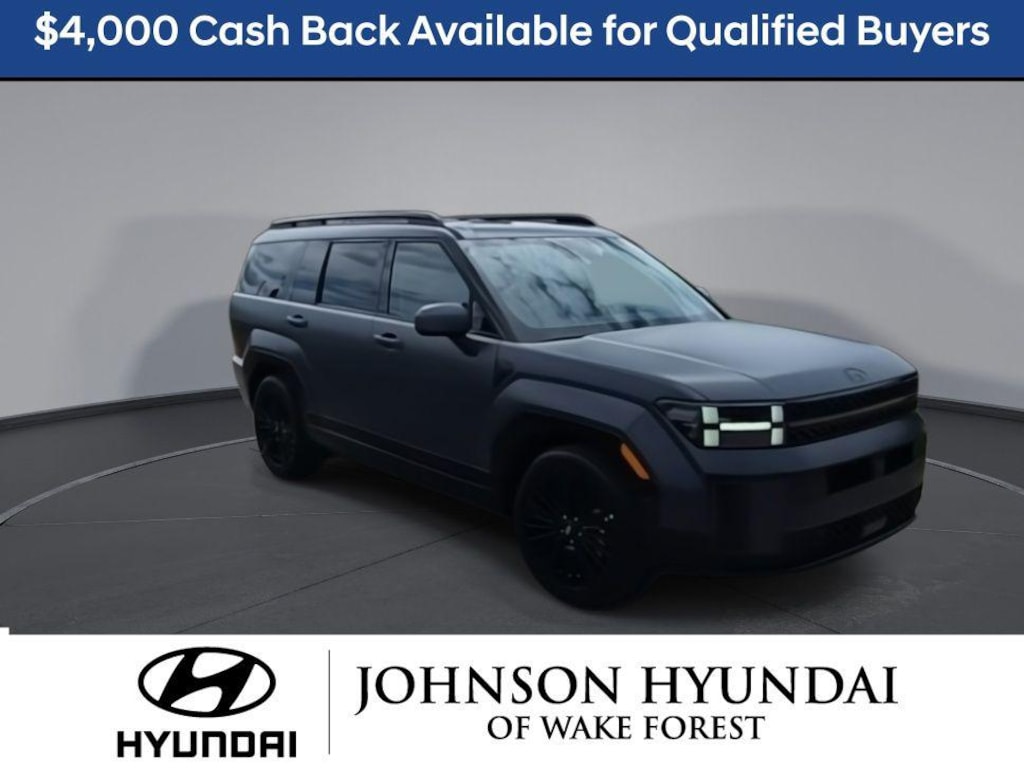I4, 12 Speakers, 3rd row seats: bench, 4-Wheel Disc Brakes, ABS brakes, Air Conditioning, Alloy wheels, AM/FM radio: SiriusXM, Apple CarPlay & Android Auto, Auto High-beam Headlights, Auto-dimming Rear-View mirror, Automatic temperature control, Brake assist, Bumpers: body-color, Cargo Net, Cargo Organizer, Cargo Tray, Carpeted Floor Mats, Delay-off headlights, Driver door bin, Driver vanity mirror, Dual front impact airbags, Dual front side impact airbags, Electronic Stability Control, Emergency communication system, Exterior Parking Camera Rear, First Aid Kit, Four wheel independent suspension, Front anti-roll bar, Front Bucket Seats, Front Center Armrest, Front dual zone A/C, Front reading lights, Fully automatic headlights, Garage door transmitter: HomeLink, Heads-Up Display, Heated and Ventilated Front Bucket Seats, Heated door mirrors, Heated front seats, Heated rear seats, Heated steering wheel, Illuminated entry, Knee airbag, Leather steering wheel, Low tire pressure warning, Memory seat, Navigation System, Occupant sensing airbag, Option Group 01, Outside temperature display, Overhead airbag, Overhead console, Panic alarm, Passenger door bin, Passenger vanity mirror, Power door mirrors, Power driver seat, Power Liftgate, Power moonroof, Power passenger seat, Power steering, Power windows, Quilted Premium Nappa Leather Seat Trim, Radio: AM/FM/HD Bose Premium Audio System, Rain sensing wipers, Rear anti-roll bar, Rear side impact airbag, Rear window defroster, Rear window wiper, Remote keyless entry, Roadside Assistance Kit, Roof Rack Crossbars, Security system, Speed control, Speed-sensing steering, Split folding rear seat, Spoiler, Steering wheel mounted audio controls, Tachometer, Telescoping steering wheel, Tilt steering wheel, Traction control, Trip computer, Turn signal indicator mirrors, Variably intermittent wipers, Ventilated front seats, Wheels: 20" x 8.5J Unique Dark Finish Alloy, I4. Price includes all applicable rebates in lieu of Special APR; Manufacture Lender Standard Financing Required *Price plus dealer installed accessories.**Please see dealer for details.$4000 - Hyundai HMF Dealer Choice : $4000 discount and 5.39% APR for 24 months. $44.05 per $1000 financed. Available to well qualified buyers who finance through Hyundai Motor Finance. H704. Exp. 03/02/2026