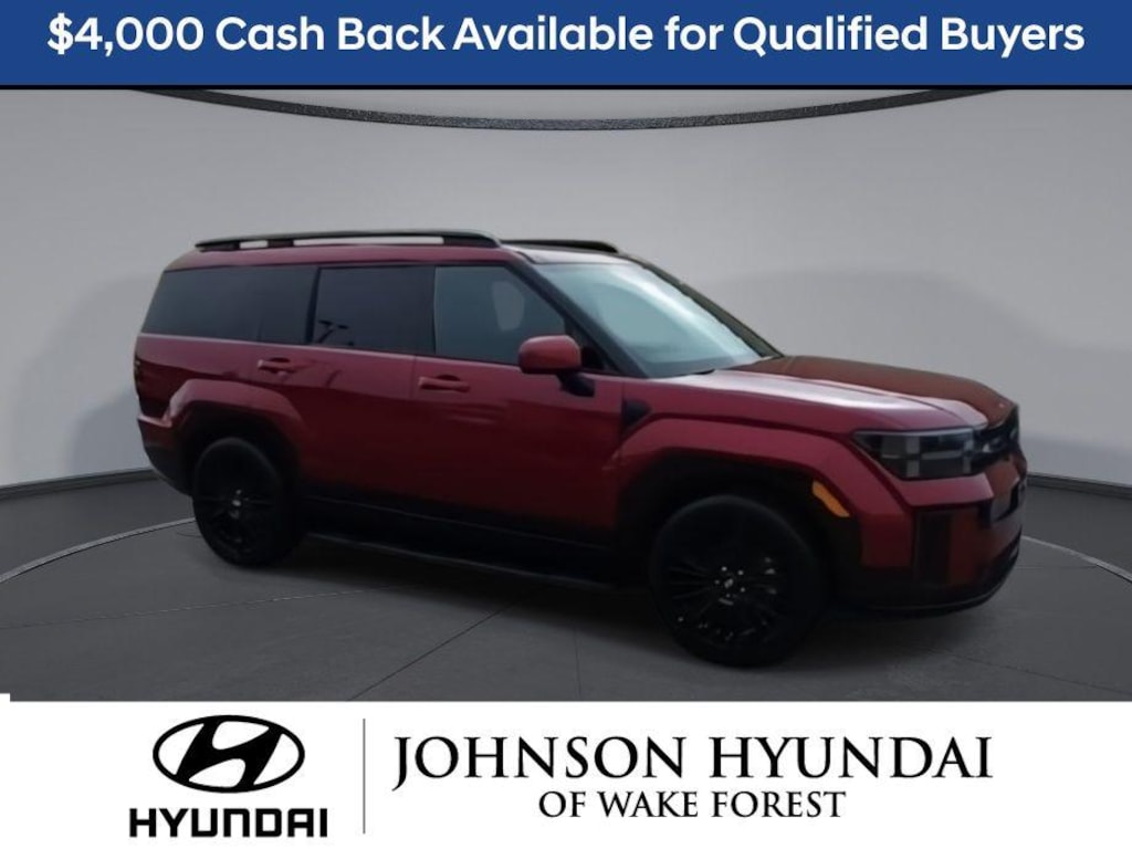 I4, 12 Speakers, 3rd row seats: bench, 4-Wheel Disc Brakes, ABS brakes, Air Conditioning, Alloy wheels, AM/FM radio: SiriusXM, Apple CarPlay & Android Auto, Auto High-beam Headlights, Auto-dimming Rear-View mirror, Automatic temperature control, Brake assist, Bumpers: body-color, Cargo Net, Cargo Tray, Carpeted Floor Mats, Delay-off headlights, Driver door bin, Driver vanity mirror, Dual front impact airbags, Dual front side impact airbags, Electronic Stability Control, Emergency communication system, Exterior Parking Camera Rear, First Aid Kit, Four wheel independent suspension, Front anti-roll bar, Front Bucket Seats, Front Center Armrest, Front dual zone A/C, Front reading lights, Fully automatic headlights, Garage door transmitter: HomeLink, Heads-Up Display, Heated and Ventilated Front Bucket Seats, Heated door mirrors, Heated front seats, Heated rear seats, Heated steering wheel, Illuminated entry, Knee airbag, Leather steering wheel, Low tire pressure warning, Memory seat, Navigation System, Occupant sensing airbag, Option Group 01, Outside temperature display, Overhead airbag, Overhead console, Panic alarm, Passenger door bin, Passenger vanity mirror, Power door mirrors, Power driver seat, Power Liftgate, Power moonroof, Power passenger seat, Power steering, Power windows, Quilted Premium Nappa Leather Seat Trim, Radio: AM/FM/HD Bose Premium Audio System, Rain sensing wipers, Rear anti-roll bar, Rear side impact airbag, Rear window defroster, Rear window wiper, Remote keyless entry, Roadside Assistance Kit, Roof Rack Crossbars, Security system, Side Steps, Speed control, Speed-sensing steering, Split folding rear seat, Spoiler, Steering wheel mounted audio controls, Tachometer, Telescoping steering wheel, Tilt steering wheel, Traction control, Transverse Panel, Trip computer, Turn signal indicator mirrors, Variably intermittent wipers, Ventilated front seats, Wheels: 20" x 8.5J Unique Dark Finish Alloy, I4. Price includes all applicable rebates in lieu of Special APR; Manufacture Lender Standard Financing Required *Price plus dealer installed accessories.**Please see dealer for details.$4000 - Hyundai HMF Dealer Choice : $4000 discount and 5.39% APR for 24 months. $44.05 per $1000 financed. Available to well qualified buyers who finance through Hyundai Motor Finance. H704. Exp. 03/31/2026