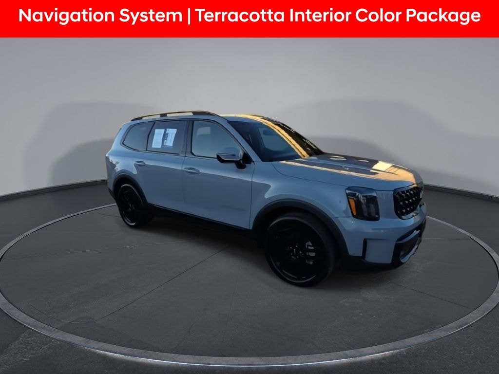 Apple CarPlay & Android Auto, Auto-dimming Rear-View mirror, Auto-leveling suspension, Automatic temperature control, Emergency communication system: 911 Connect, Exterior Parking Camera Rear, Front dual zone A/C, Front fog lights, Fully automatic headlights, Garage door transmitter: HomeLink, harman/kardon® Speakers, Heated & Ventilated Front Bucket Seats, Heated door mirrors, Leather Seat Trim, Leather Shift Knob, Leather steering wheel, Memory seat, Navigation System, Outside temperature display, Power driver seat, Power Liftgate, Power moonroof, Power passenger seat, Radio: AM/FM Harman Kardon Audio System, Rear air conditioning, Reclining 3rd row seat, Smart Key w/ Push Button and Remote Start, Steering wheel mounted audio controls, Telescoping steering wheel, Terracotta Interior Color Package, Wheels: 20" x 7.5" Black Finish X-LINE Exclusive, 10 Speakers, 3.648 Axle Ratio, 3rd row seats: split-bench, 4-Wheel Disc Brakes, ABS brakes, Air Conditioning, Alloy wheels, AM/FM radio: SiriusXM, Auto High-beam Headlights, Brake assist, Bumpers: body-color, Carpet Floor Mats, Compass, Delay-off headlights, Driver door bin, Driver vanity mirror, Dual front impact airbags, Dual front side impact airbags, Electronic Stability Control, Four wheel independent suspension, Front anti-roll bar, Front Bucket Seats, Front Center Armrest, Front reading lights, Heated front seats, Heated steering wheel, Illuminated entry, Knee airbag, Low tire pressure warning, Occupant sensing airbag, Overhead airbag, Overhead console, Panic alarm, Passenger door bin, Passenger vanity mirror, Power door mirrors, Power steering, Power windows, Radio data system, Rear anti-roll bar, Rear audio controls, Rear reading lights, Rear side impact airbag, Rear window defroster, Rear window wiper, Remote keyless entry, Roof rack: rails only, Security system, Speed control, Speed-sensing steering, Split folding rear seat, Spoiler, Tachometer, Tilt steering wheel, Traction control, Trip computer, Turn signal indicator mirrors, Variably intermittent wipers, Ventilated front seats, Apple CarPlay & Android Auto, Auto-dimming Rear-View mirror, Auto-leveling suspension, Automatic temperature control, Emergency communication system: 911 Connect, Exterior Parking Camera Rear, Front dual zone A/C, Front fog lights, Fully automatic headlights, Garage door transmitter: HomeLink, harman/kardon® Speakers, Heated & Ventilated Front Bucket Seats, Heated door mirrors, Leather Seat Trim, Leather Shift Knob, Leather steering wheel, Memory seat, Navigation System, Outside temperature display, Power driver seat, Power Liftgate, Power moonroof, Power passenger seat, Radio: AM/FM Harman Kardon Audio System, Rear air conditioning, Reclining 3rd row seat, Smart Key w/ Push Button and Remote Start, Steering wheel mounted audio controls, Telescoping steering wheel, Terracotta Interior Color Package, Wheels: 20" x 7.5" Black Finish X-LINE Exclusive.